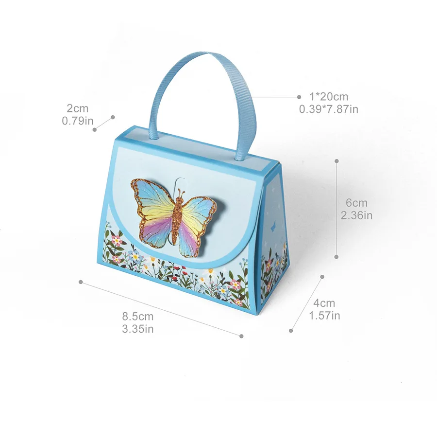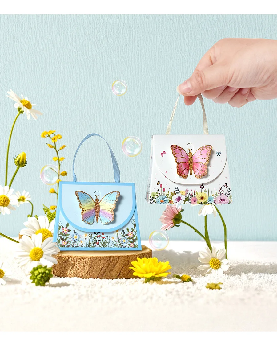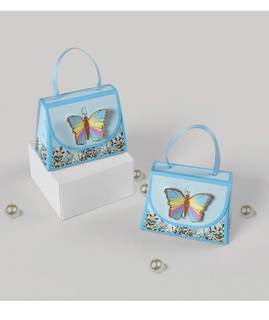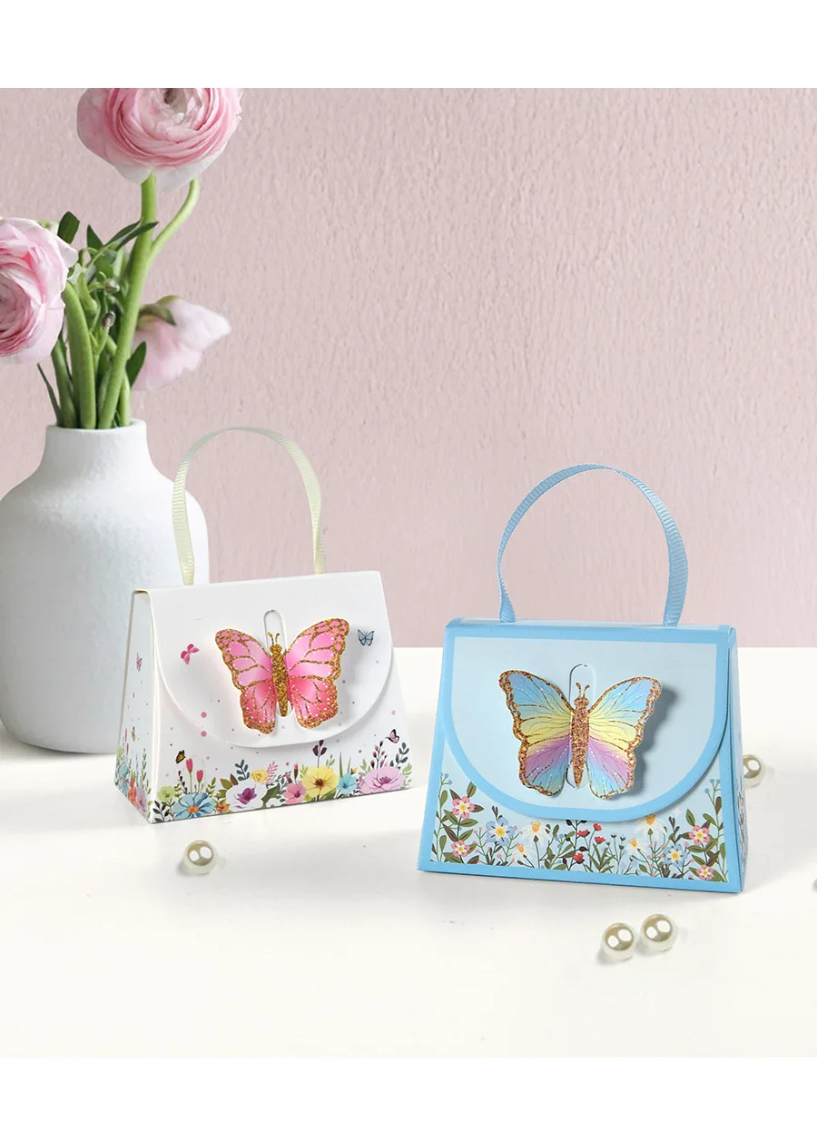 10Pcs Sweet Butterfly Theme Handbag Paper Cookie Candy Box Gift Packing Boxes for Kids Birthday Baby Shower Wedding Party Decor