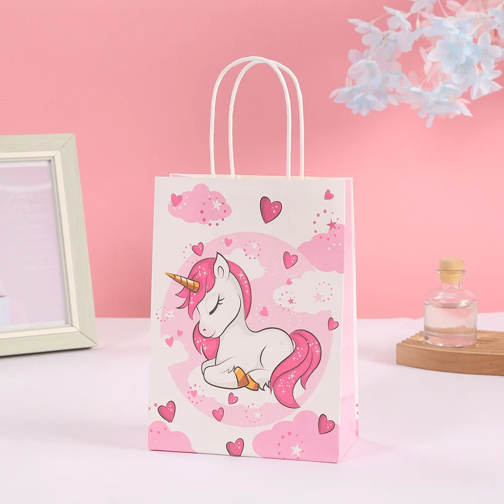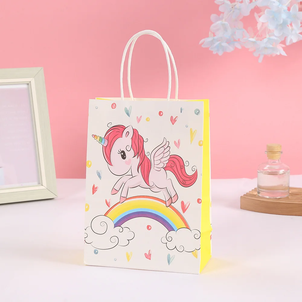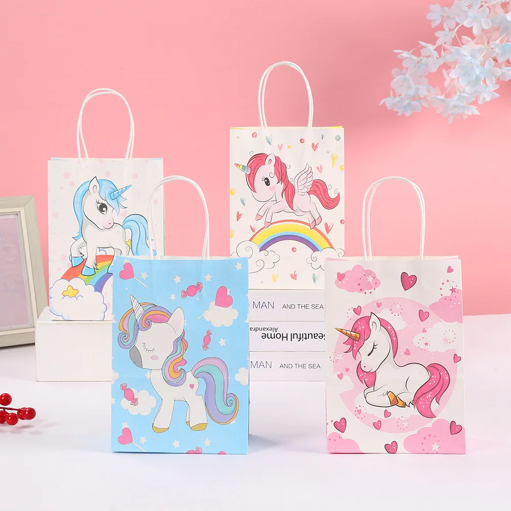 4Pcs Cartoon Rainbow Unicorn Theme Paper Gift Packing Bag Candy Cookie Bags for Kids Birthday Baby Shower Party Decoration
