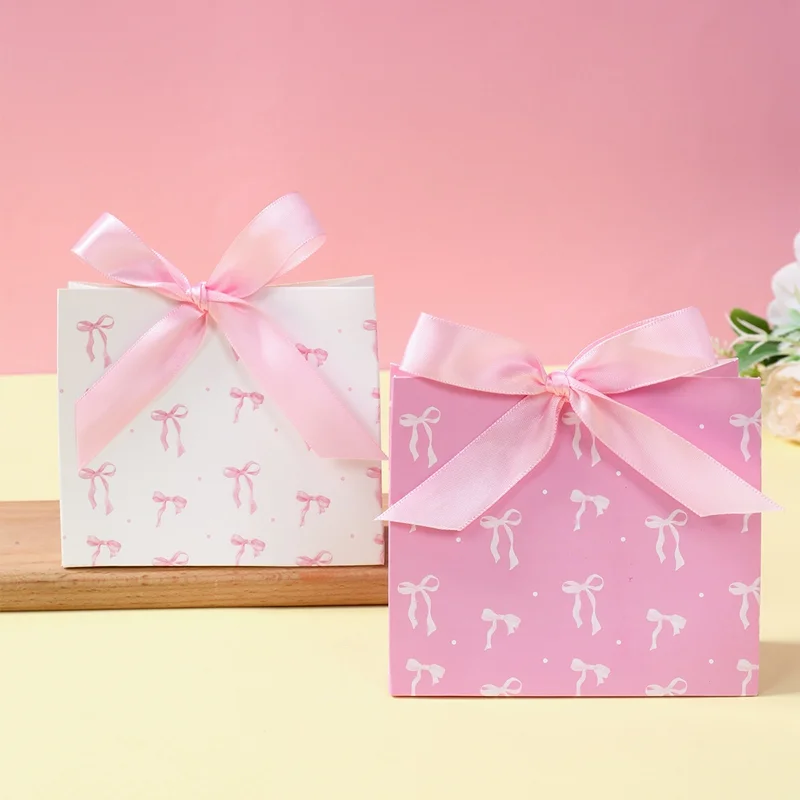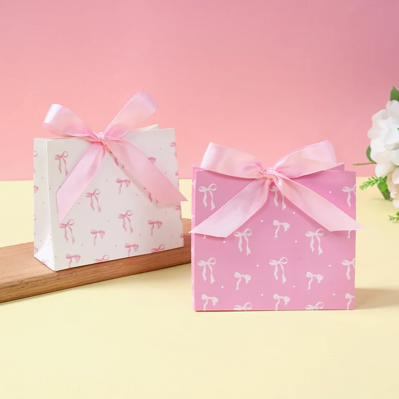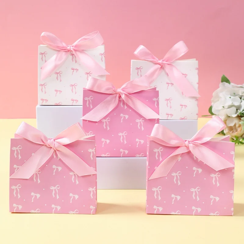 6Pcs Sweet Pink Candy Cookie Box with Bow Gift Packing Boxes for Kids Girl Birthday Baby Shower Wedding Party Decoration