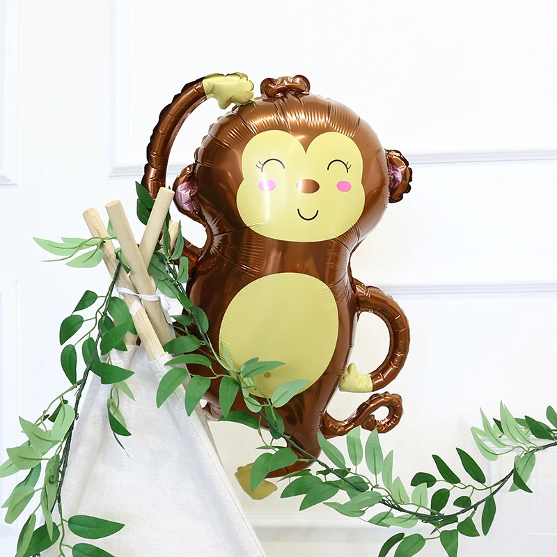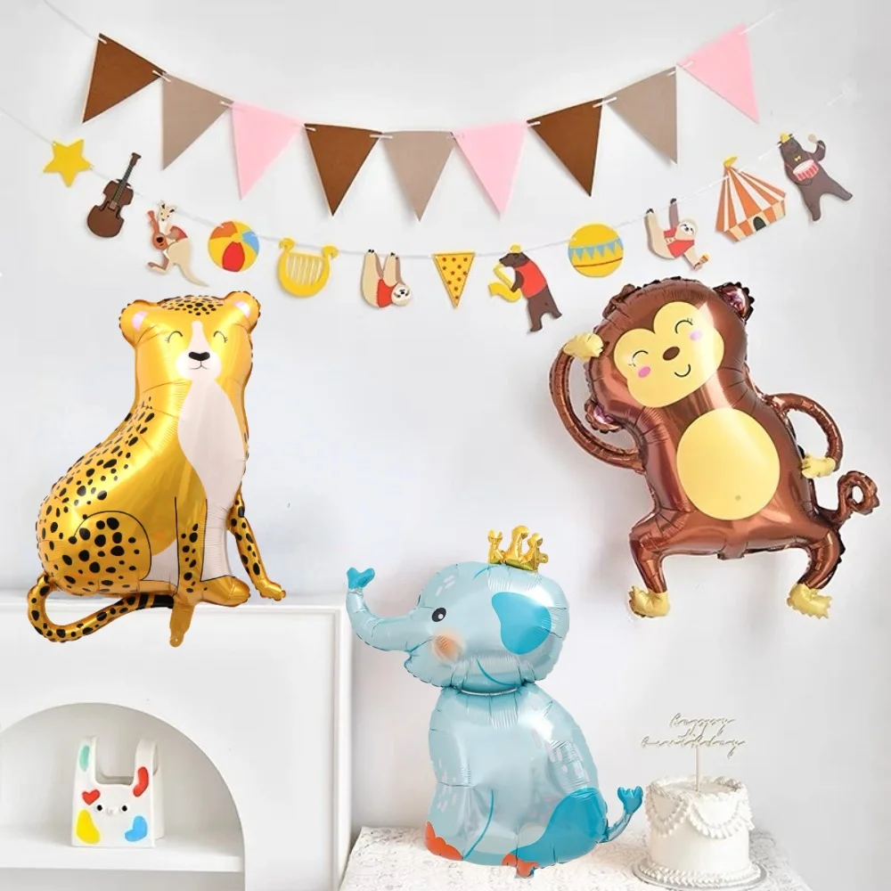 Cartoon Animal Balloon Elephant Monkey Leopard Lion Shaped Aluminum Film Balloon Birthday Jungle Theme Party Scene Decoration