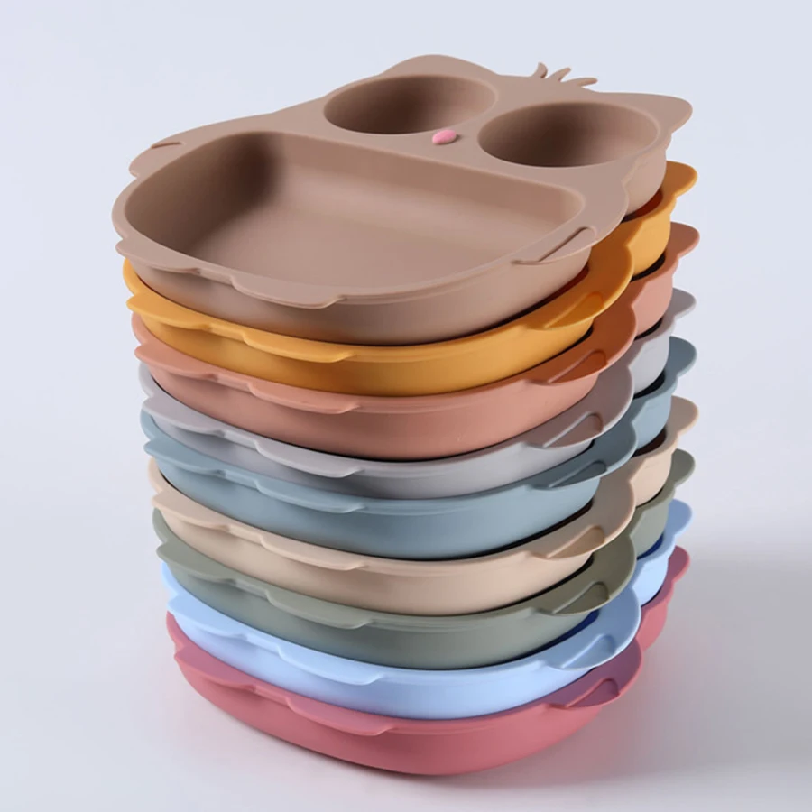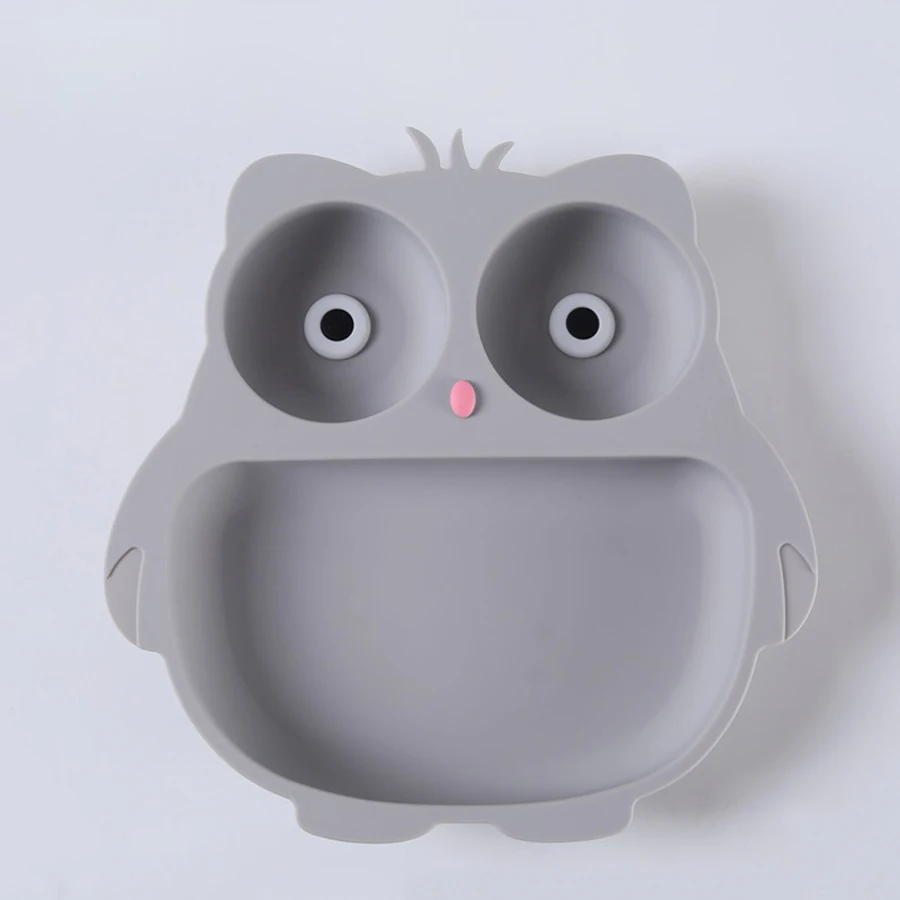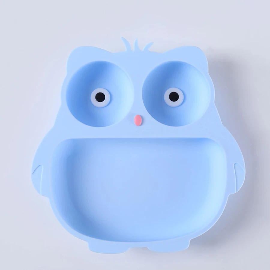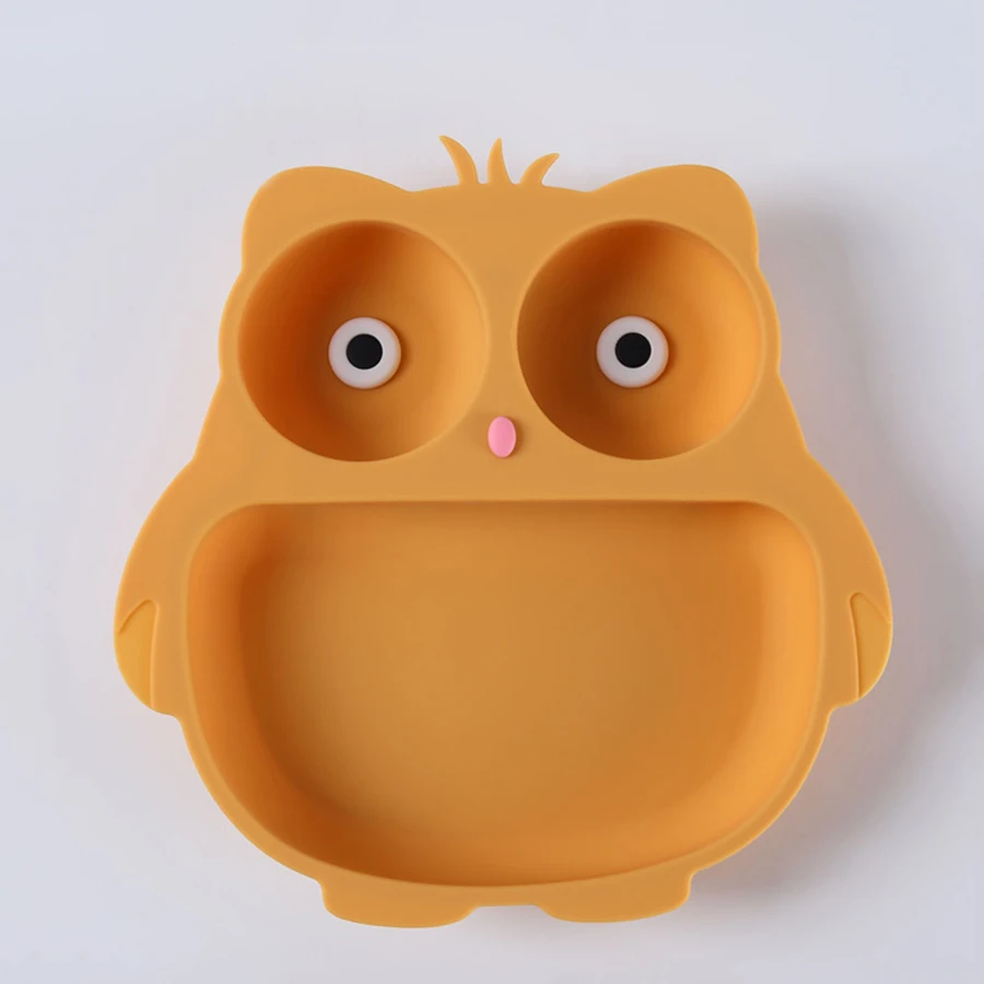 Silicone Children'S Tableware Suction Cup Cartoon Owl Plate Silicone Baby Bowls and Plates Children'S Training Eating Auxiliary