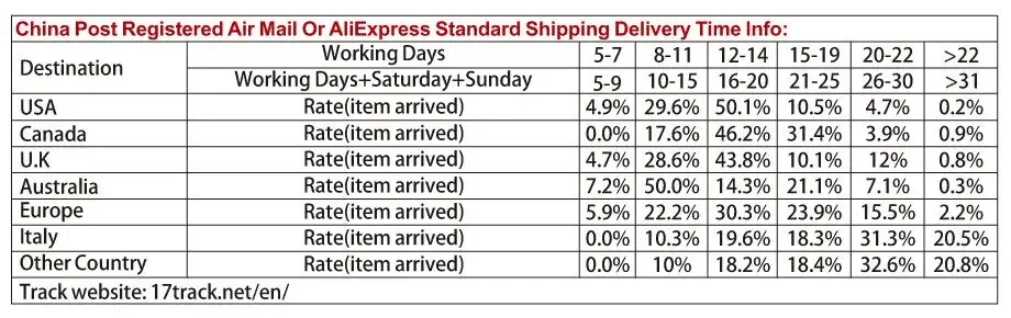 The items will be shipped by AliExpress Standard Shipping or China Post Registered Air Mail,
