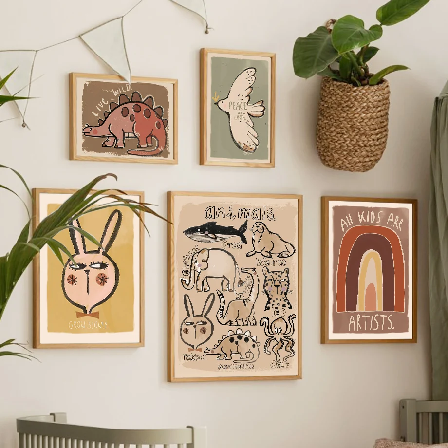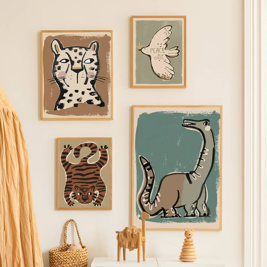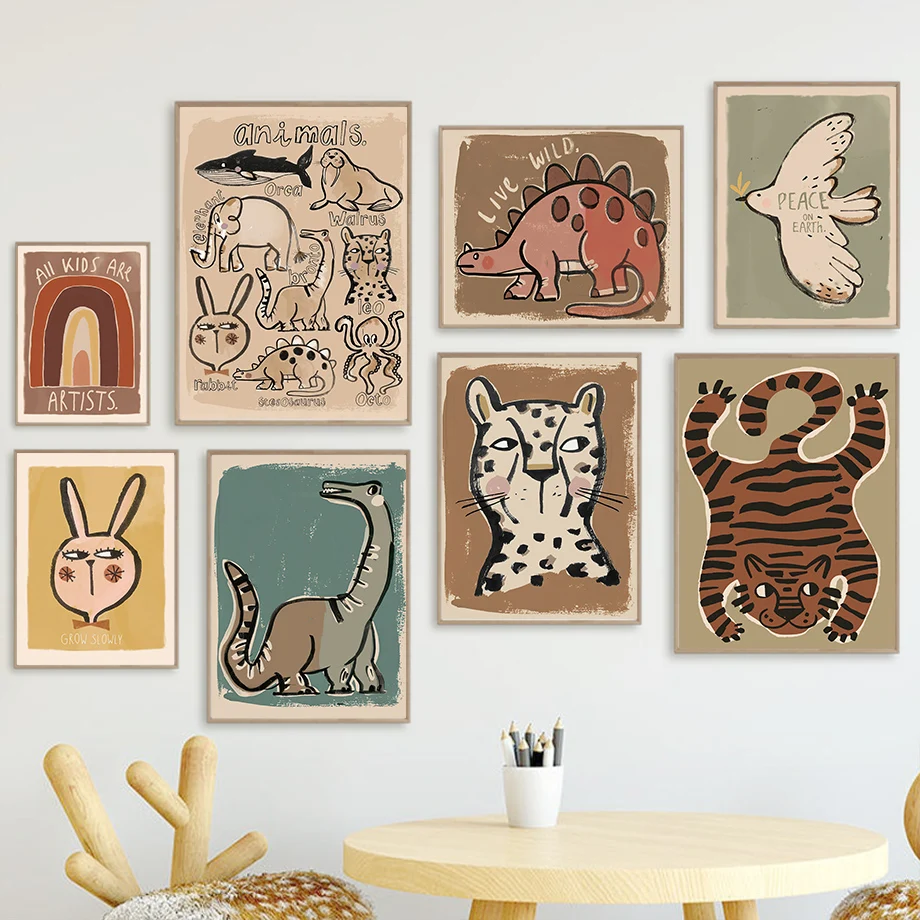 Whale Leopard Dinosaur Pigeon Abstract Nursery Animal Posters and Prints Wall Art Canvas Painting Pictures Baby Kids Room Decor