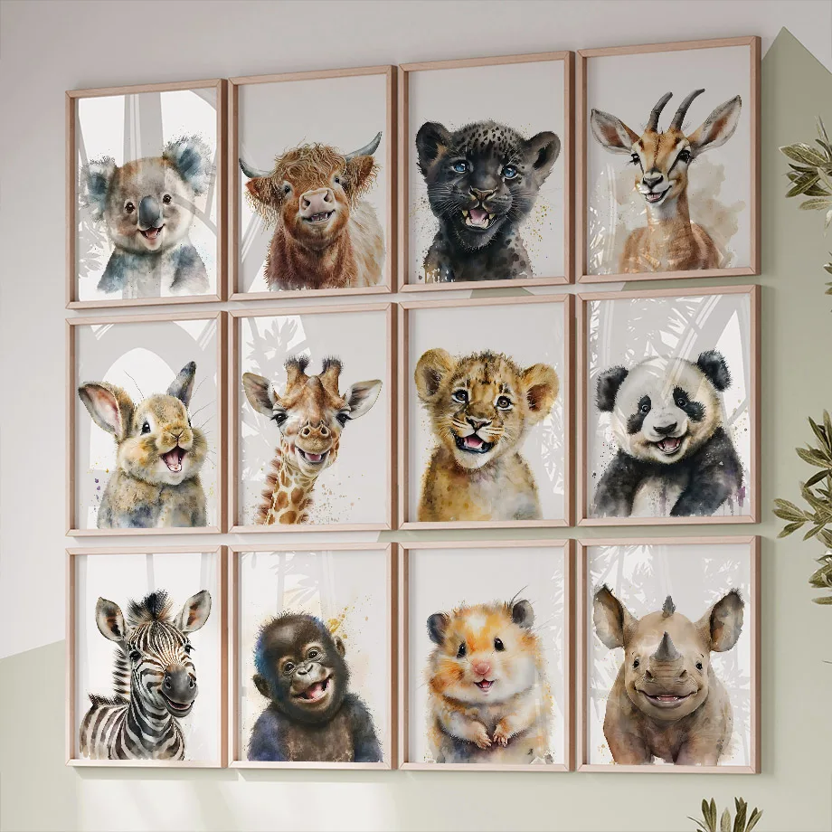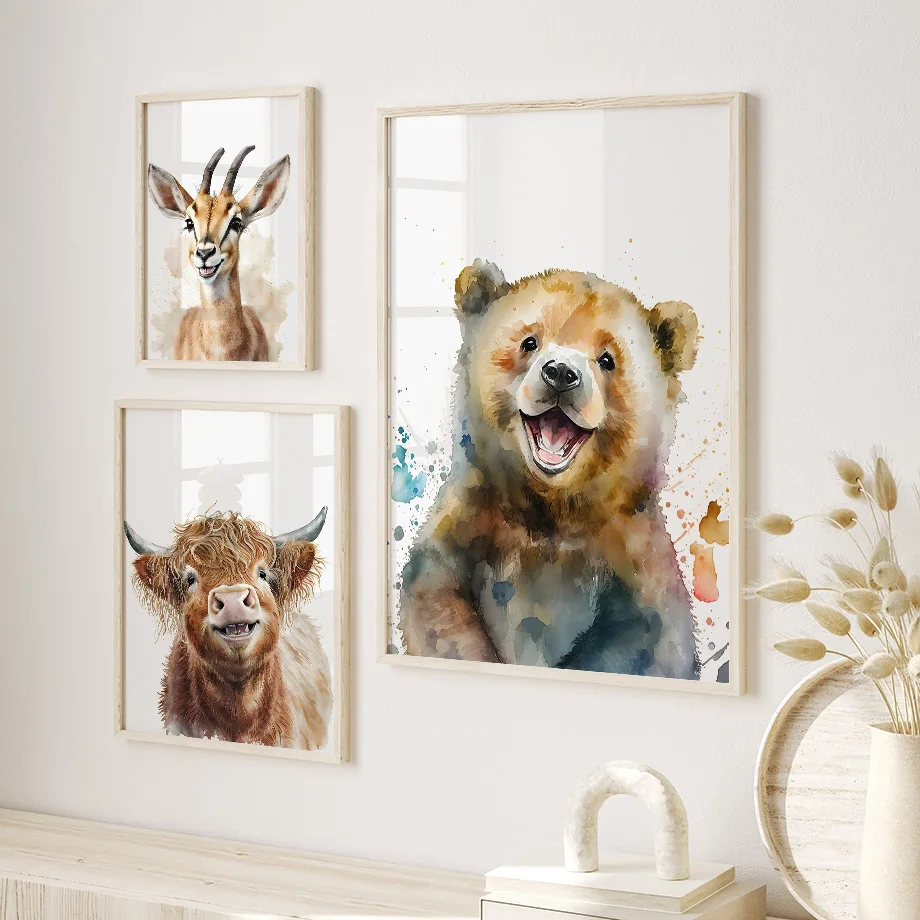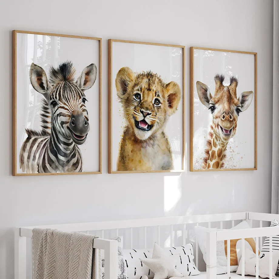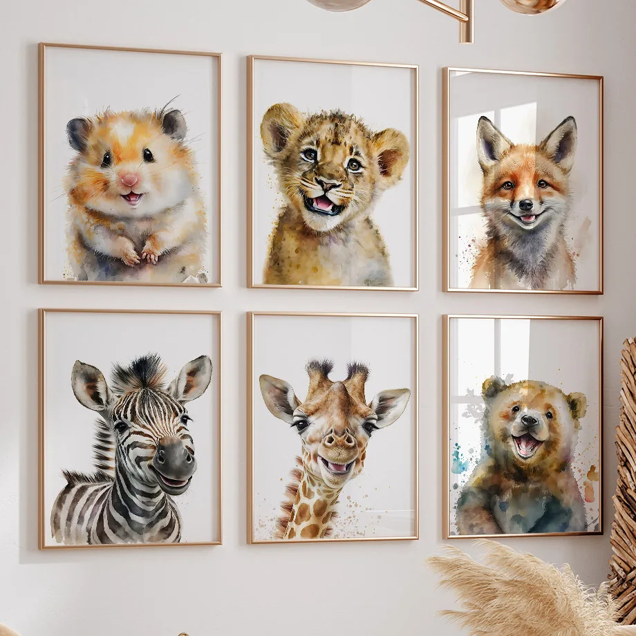 Wild Animals Bear Lion Fox Giraffe Zebra Wall Art Canvas Painting Nordic Posters Prints Nursery Pictures Kids Baby Room Decor